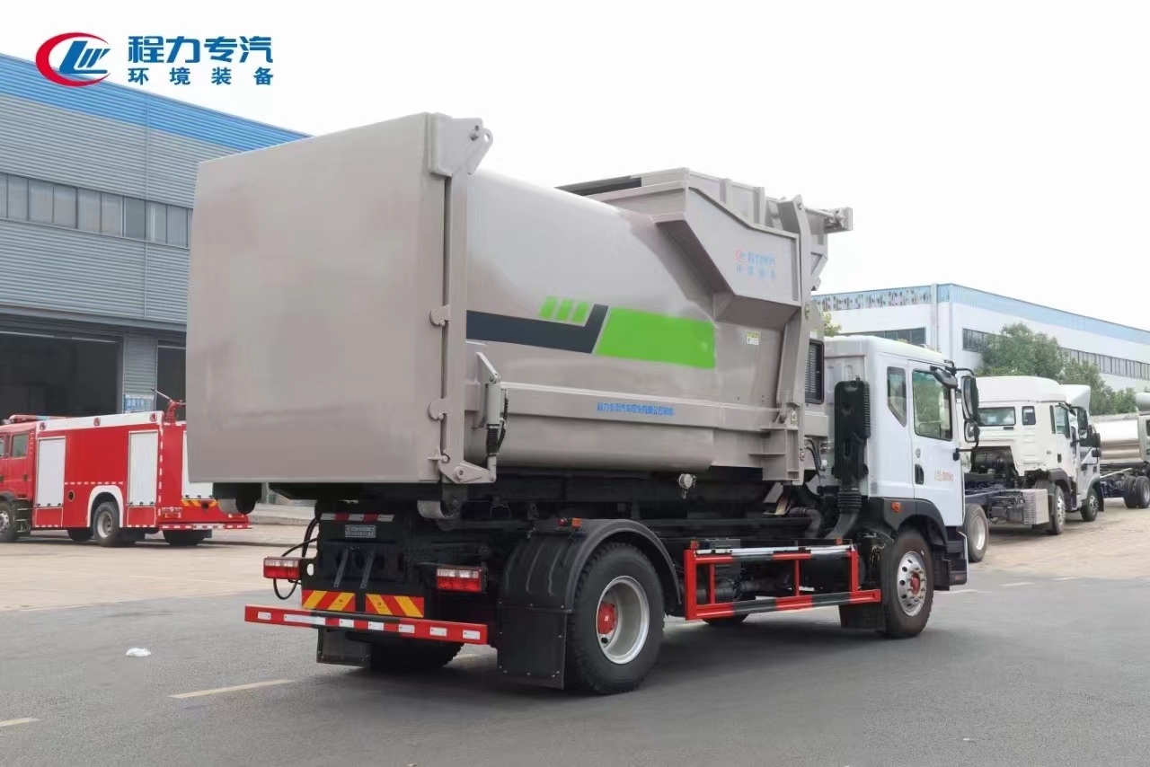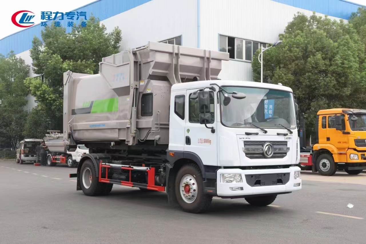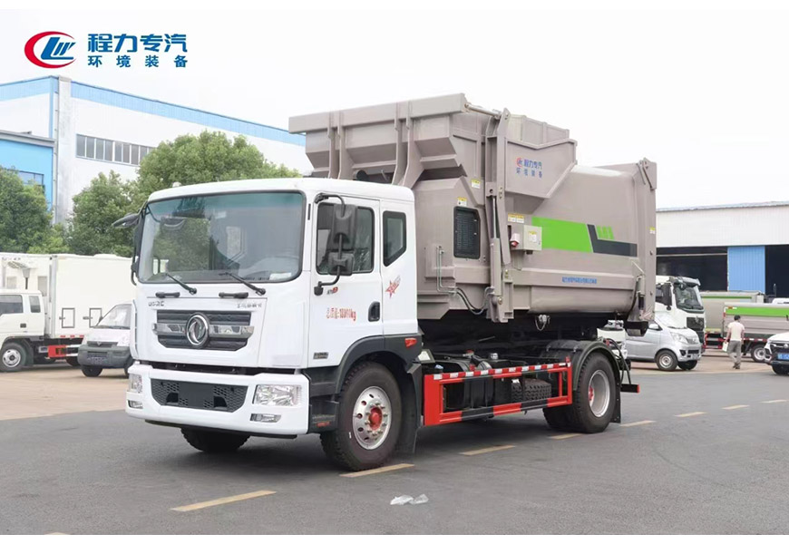 新工藝國(guó)六東風(fēng)多利卡D9勾臂車(chē)+移動(dòng)壓縮箱