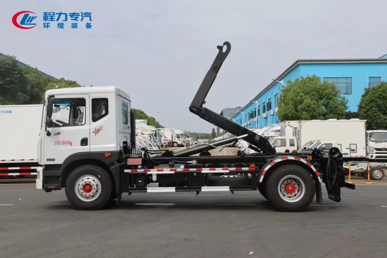 上裝配置 內(nèi)置安全泄壓閥(獨(dú)有技術(shù)),配套10-16方勾臂垃圾箱或移動(dòng)站,主勾臂由高強(qiáng)度板材制作,雙油缸控制,伸縮式主臂,加強(qiáng)型上裝結(jié)構(gòu),液壓支腿,橫向鎖緊,品牌多路閥,液壓油泵,標(biāo)配室內(nèi)外操作(帶遙控),防誤操作,帶平衡閥,液壓鎖。