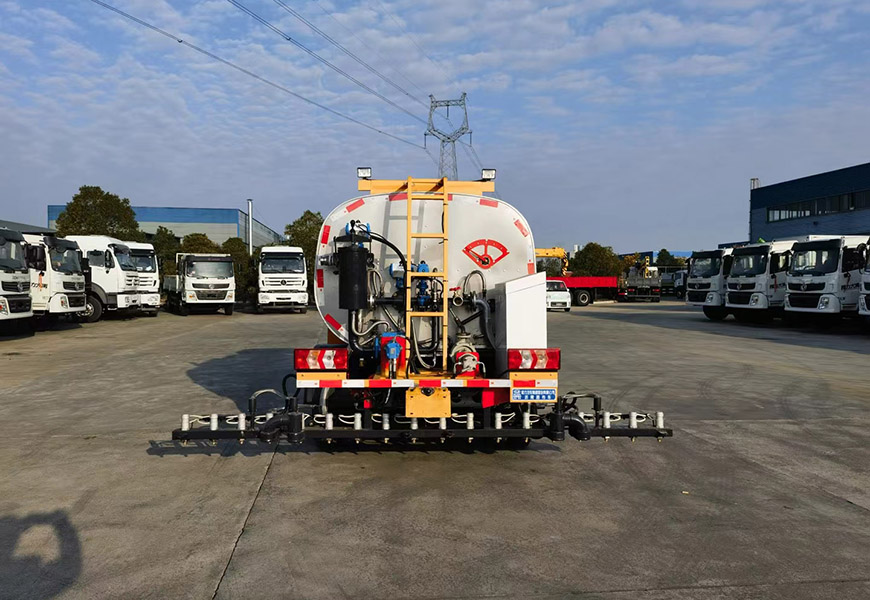 該車廣泛應(yīng)用于修筑高等級公路瀝青路面灑布作業(yè),主要專用裝置瀝青罐體,瀝青噴灑系統(tǒng),罐體總?cè)萘?0.81立方米,有效容積:0.77立方米,罐體外形尺寸(長×寬×高)(mm):2350×1800×1350,介質(zhì):液態(tài)瀝青,密度:900千克/立方米;罐體保溫層厚度為355mm;側(cè)防護材料采用鋁合金,螺栓連接;后防護由專用裝置代替,下邊緣離地高360mm;ABS型號/廠家:CM4XL-4S/4M/廣州瑞立科密汽車電子股份有限公司;后部安裝工作燈,僅在夜間駐車狀態(tài)下起照明作用,行駛過程中不可點亮。外形長與前懸/軸距/后懸(mm)的對應(yīng)關(guān)系為:5520/1100/2850/1570,5520/1075/2950/1495。隨底盤選裝駕駛室,選裝底盤附件儲氣筒尿素罐安裝位置。