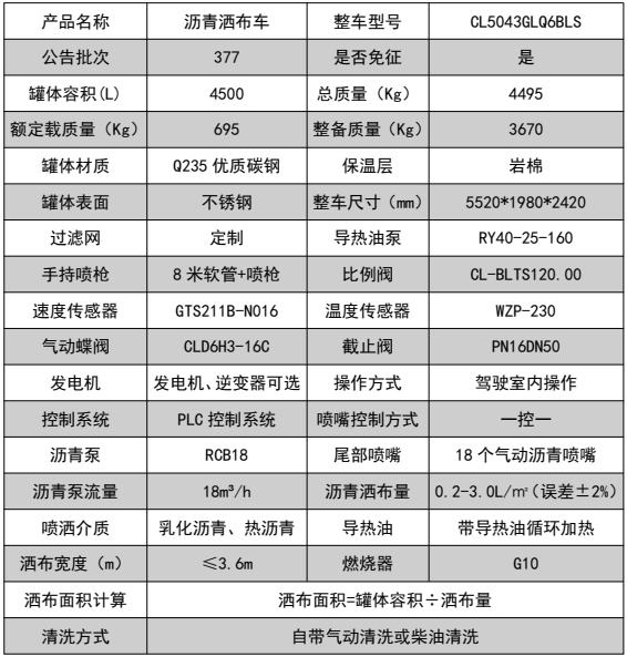 ??????湖北程力汽車:程力CL5043GLQ6BLS型江淮藍牌智能瀝青灑布車產(chǎn)品型號及參數(shù)配置,程力CL5043GLQ6BLS型江淮藍牌智能瀝青灑布車高清圖片,程力汽車系列程力CL5043GLQ6BLS型江淮藍牌智能瀝青灑布車最新報價請撥打客服熱線。車輛主要配置 產(chǎn)品商標 程力牌 公告批次 385(擴展) 產(chǎn)品名稱 瀝青灑布車 產(chǎn)品型號 CL5043GLQ6BLS 總質(zhì)量(Kg) 4495 罐體容積(m3) 0.81 額定載質(zhì)量(Kg) 695 外形尺寸(mm) 5520 × 1980 × 2420 整備質(zhì)量(Kg) 36...
