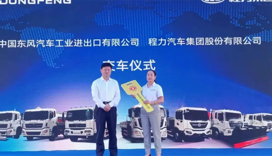 隨后,中國東風汽車工業(yè)進出口有限公司商用車海外營銷部中重型產(chǎn)品總監(jiān)吳永剛與程力集團國際市場部業(yè)務(wù)經(jīng)理陳葦舉行了交車鎖匙牌授牌儀式。