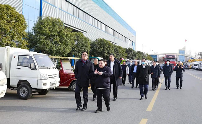 王志才總經(jīng)理一行領(lǐng)導(dǎo)及負(fù)責(zé)人,不畏凜冬寒冷,先后步行參觀程力(曾都)汽車工業(yè)園、程力南郊汽車裝備制造工業(yè)園兩大基地。來賓們看產(chǎn)品、下車間、問工藝,無一不細(xì)致入微,調(diào)研考察工作扎實(shí)認(rèn)真高效。