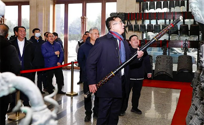 會(huì)議結(jié)束后,程阿羅總經(jīng)理在迎賓大廳向王志才一行嘉賓講述了隨州古老文明的編鐘文化,雙方嘉賓集體合影留念。