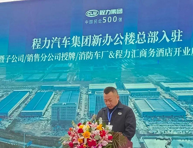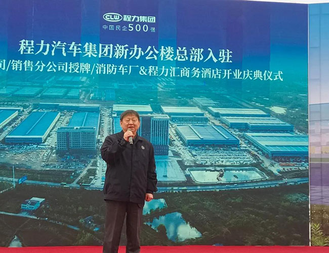 在程力集團(tuán)新廠辦公大樓總部入駐慶典會上,集團(tuán)總經(jīng)理程阿羅為程力消防車公司總經(jīng)理汪東洋,舉行了消防器材廠開業(yè)授牌儀式,汪東洋總經(jīng)理作了表態(tài)和發(fā)言。