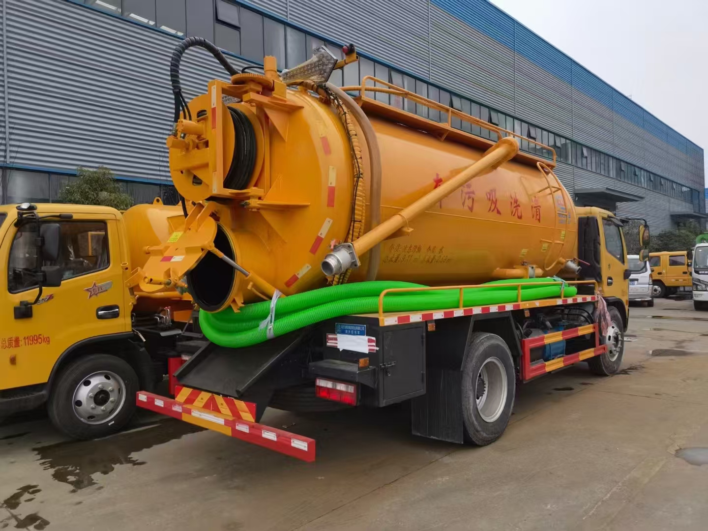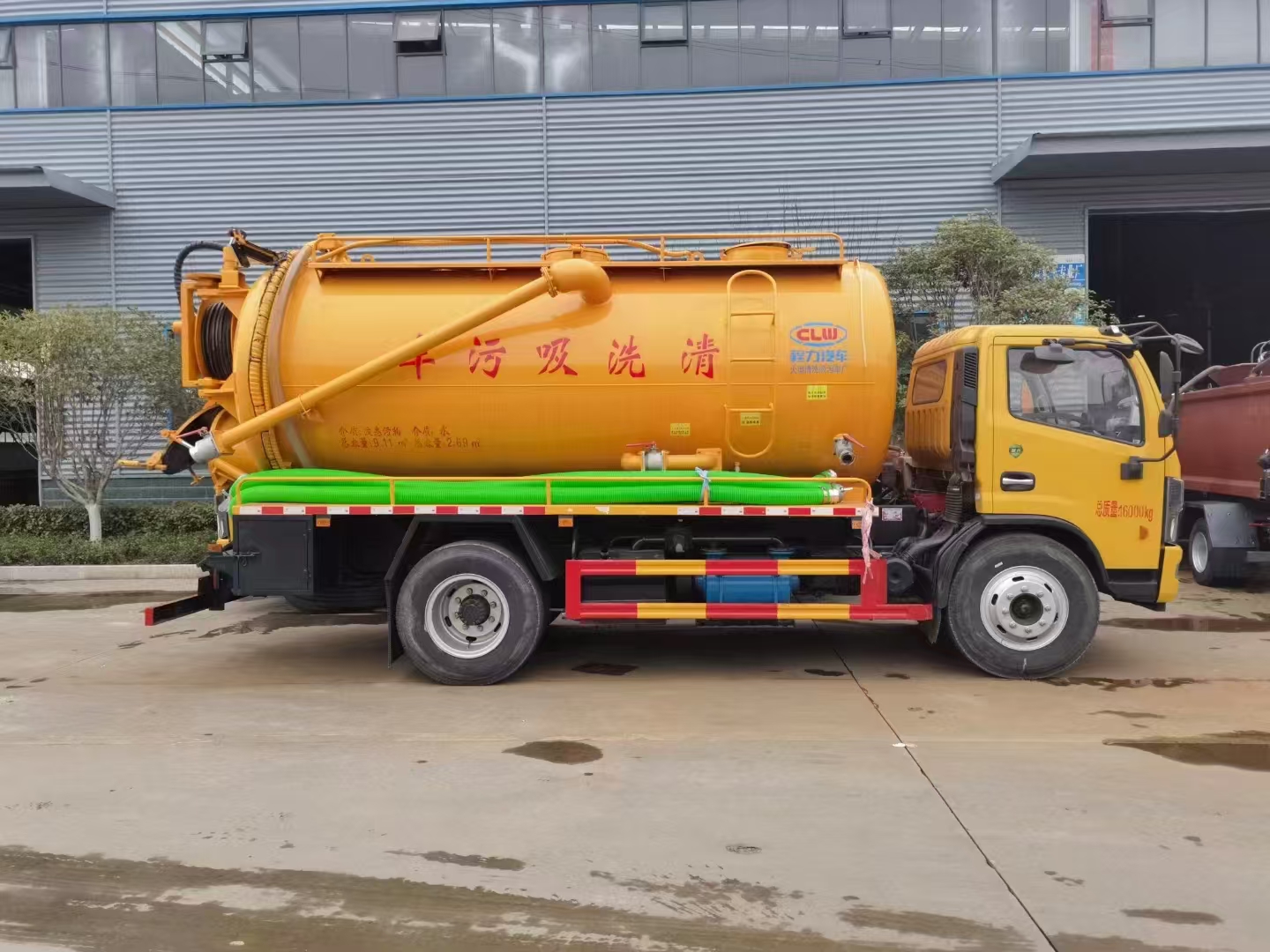 上裝配置 吸污罐容積約9立方,清水箱約4立方,污水罐6mm制作,清水罐和污水罐安裝互通。清水罐一個量水管,水箱最低點一個DN65球閥,帶消防接頭,品孚255流量高壓泵,帶60米19號高壓管,卷盤液壓旋轉(zhuǎn)180度,液壓收放管. 污水罐:SK-15水循環(huán)泵,水循環(huán)泵水箱為碳鋼材質(zhì),頂部防溢閥位置盡量最低,后蓋600液壓打開,100球閥直通罐頂吸污尾部一個150的排污球閥,吸污壓力表裝在水箱附近,罐體尾部兩側(cè)工具箱,手動油門,1根8米吸污管帶陰陽端接口,一個水雷槍頭,其他廠內(nèi)標配…